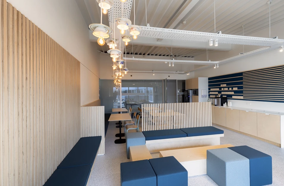 The building to the east of the site will house Volkswagen D'Ieteren Finance premises, emphasizing a circularity and sustainability approach. The transformation aims to eliminate superfluous elements while preserving the existing structure to create an evolving and intelligent space. A strategy of relocating technical spaces was adopted, concentrating openings on the east and west facades to enhance connectivity with the landscaped park. An extension of the existing volume was achieved with a cloister-shaped portico, creating two distinct outdoor areas and organizing outdoor spaces. The use of brick emphasizes the building's pure form, while a latticed moucharabieh system offers a unique architectural signature, contributing to a distinct identity.